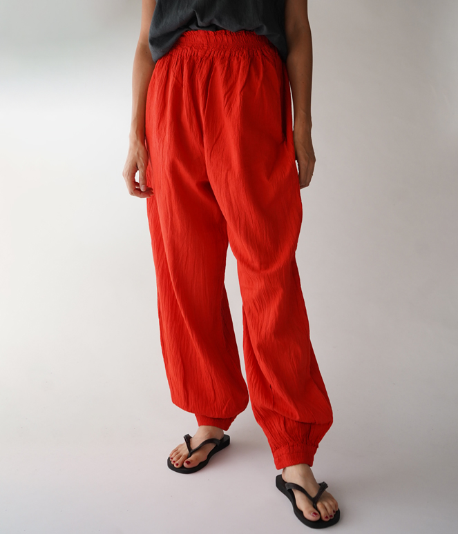 人気のヂェン先生のバルーンパンツ。こちらは、両サイドのシルエットがスリムなタイプです。
