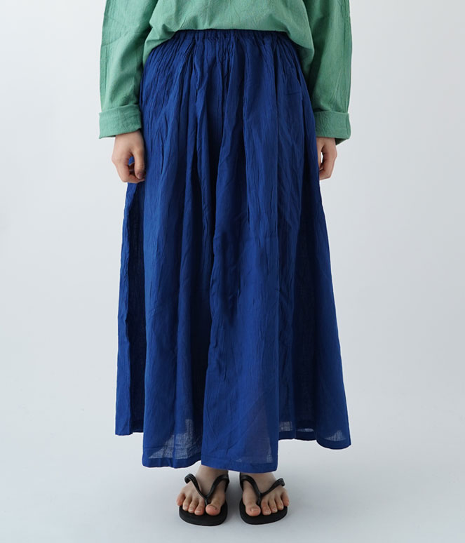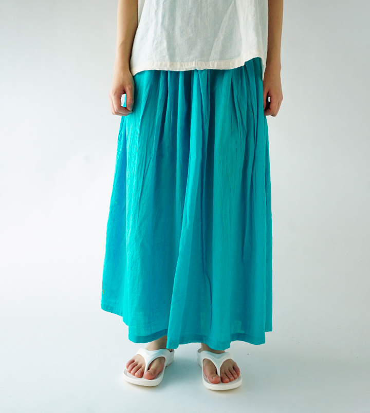 ヂェン先生のつくるギャザースカートは羽衣のような薄い生地でたっぷりのギャザーが特徴です。ふんわり軽くて風になったよう。動くたびに生地に陰影がつくとてもきれいなスカートです。