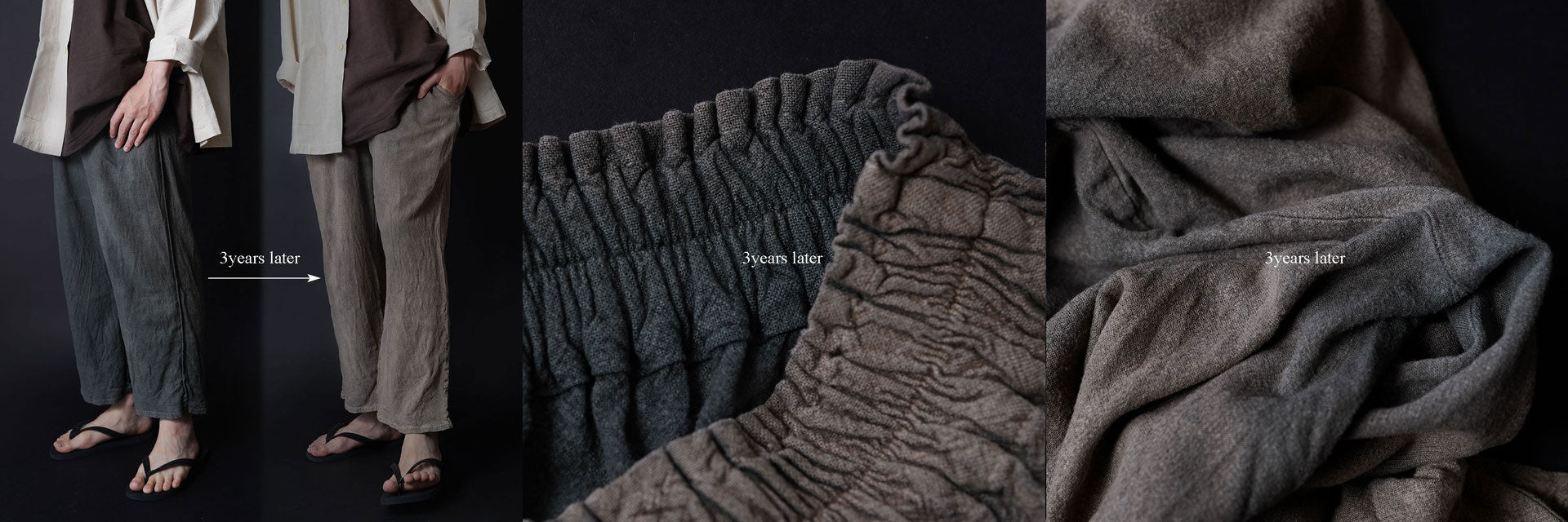 ヂェン先生の日常着は、愛用すればするほど生地も柔らかくなって肌なじみもよくなりますが、同時に退色もしていきます。その変化も楽しみの一つではありますが、さらに長くご愛用いただくために染め重ねてみることを選択肢の一つに入れてみてください。